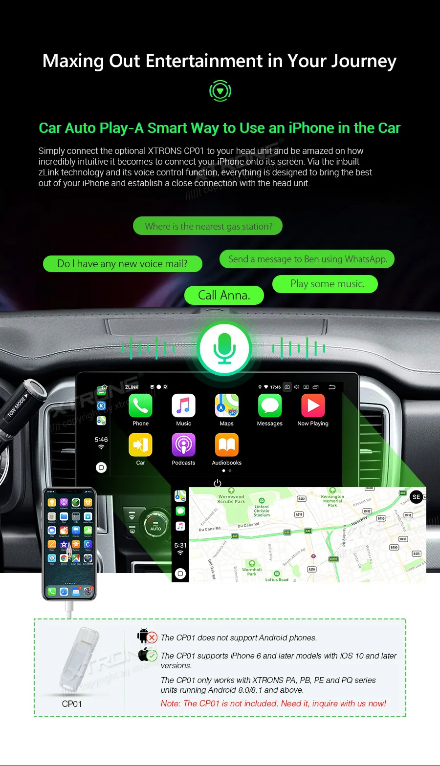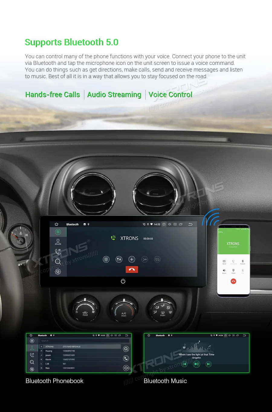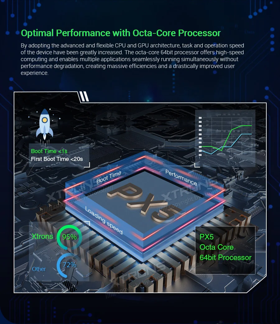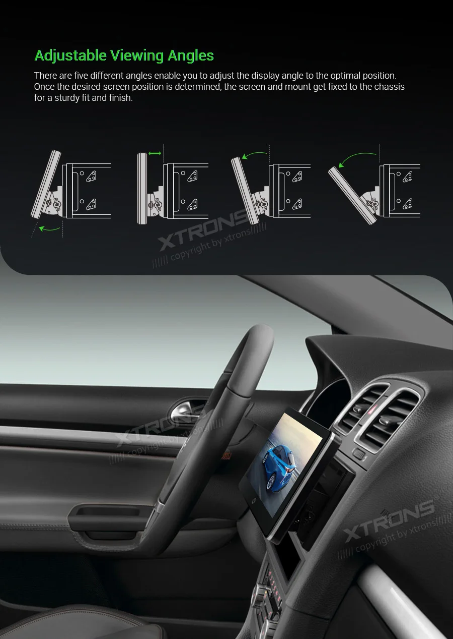 Note: This unit does NOT have a DVD drive. *Android 9.0 Operating System *64GB ROM, 4GB DDR3 RAM, Octa-Core ARM Cortex PX5 64Bit Processor *10.25 inch 2.5D curved capacitive touch screen, 1280*480 DPI super clear screen *178° adjustable viewing angel IPS/VA panel *Support car auto play *Support 3G/4G/Wi-Fi connection *Optional DAB function *Optional OBD function *Optional TPMS function *Support Bluetooth 5.0 for handsfree calls and music *Screen Mirroring Function *Steering wheel control *Support online/offline navigation *Support front/reversing camera input and DVR input *XTRONS UI, Redesigned back end *Built-in SD & USB Slot *Built-in radio tuner with 54FM/24AM preset *Optional Accessories to perfect your user Experience Optimal Performance with Octa-Core Processor By adopting the advanced and flexible CPU and GPU architecture, task and operation speed of the device have been greatly increased. The octa-core 64bit processor offers high-speed computing and enables multiple applications seamlessly running simultaneously without performance degradation, creating massive efficiencies and a drastically improved user experience. Boot Time <1s First Boot Time<20s Industrial Standard Hardware Equipped with the standard hardware in automotive industry, the head unit offers excellent stability and reliable performance. Bluetooth Module-- Detached Module--Better Bluetooth calling quality WiFi Module--Detached Module--Better signal receiving, anti-interference Radio Chip --NXP6686--Better radio signal receiving Amplifier Chip--TDA7851 --High-fidelity and powerful audio effects GPS Chip -- MG1613S--Accurate positioning 64GB ROM--Upgraded Storage / 4GB RAM --DDR3 memory Rockchip CPU --1.5GHz * 8 Core --64-bit Octa-core processor Power Supply--Sealed Inductor --Al Capacitors Compatible from 9V to 16V 2.5D Curved Capacitive Touch Screen With XTRONS TBX125L, you're getting more than just a bigger screen. Its 10.25'' screen comes with a beautiful 2.5D curved glass panel and G+G capacitive touch screen. The dual layer glass solution allows the touch GLASS layer to be highly sensitive while the surface tempered GLASS to achieve a new level of scratch crack and corrosion resistance. Tempered Glass --scretch, crack and corrosion resistance Touch GLASS layer -- Highly sensitive 2.5D Arc Edge -- ergonomic and aesthetic Clear Image From Any Angle Thanks to its IPS (In-Panel Switching) technology, the TBX125L makes it possible to enjoy viewing on a Big Screen stereo without eye fatigue or discomfort from any angle. Catch every single crisp, clear and vibrant picture from expansive 178° viewing angle. Keep yourself fully engaged in navigation maps or favorite videos. Adjustable Viewing Angles There are five different angles enable you to adjust the display angle to the optimal position. Once the desired screen position is determined, the screen and mount get fixed to the chassis for a sturdy fit and finish. Car Auto Play- A Smart Way to Use an iPhone in the Car Simply connect the optional XTRONS CP01 to your head unit and be amazed on how incredibly intuitive it becomes to connect your iPhone onto it its screen. Via the inbuilt zLink technology and its voice control function, everything is designed to bring the best out of your iPhone and establish a close connection with the head unit. The CP01 does not support Android phone. The CP01 supports iPhone 6 and later models with iOS 10 and later versions. The CP01 only works with XTRONS PA, PB, PE and PQ series unit running Android 8.0/8.1 and above. Note: TheCP01is not included. Need it, inquire with us now! •Extended Functions for more Enjoyable Use 1. DAB+ Enjoy the audiophile-level sound in your car XTRONS USBDAB01andUSBDAB02are compatible. Need it, inquire with us now! 2. TPMS Monitors your tire pressure and temperature XTRONSTPMS01/TPMS05are compatible. Need it, inquire with us now! 3.OBD2 A window for you to diagnose your car status XTRONSOBD02is compatible. Need it, inquire with us now! 4. MIC Makes the hands free Bluetooth easier and safer XTRONSMIC001&MIC002&MIC003are compatible. Need it, inquire with us now! 5.DVR Helps you record your journey on the road XTRONSDVR019S,DVR022,DVR023S, DVR025S,DVR027Sare compatible. Need it, inquire with us now! 6.KEYBOARD Makes the input of information on this car stereo easily XTRONSAMK003is compatible. Need it, inquire with us now! 7.4G Browse on the Internet with 3G/4G Dongle XTRONS4GDONG001and3GDONG008arecompatible, need it, inquire with us now! 8.CAMERA Ensure the safety of your driving XTRONSCAM005/CAM006/CAM007/CAM009/CAM001Fare compatible. Need it, inquire with us now! 9.Car Auto Play The best car connecting experience for iOS phone. XTRONS CP01is compatible. Need it, inquire with us now!